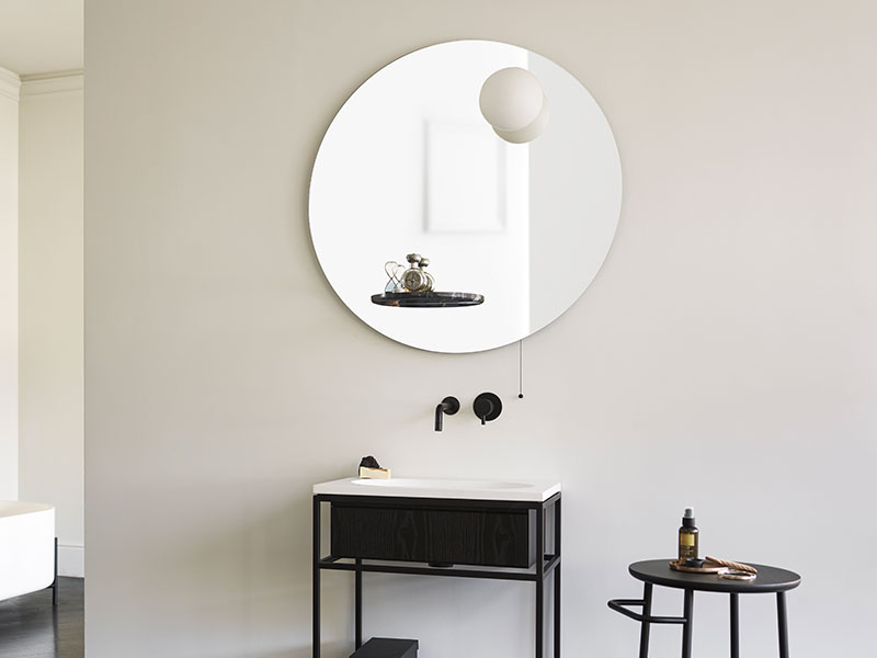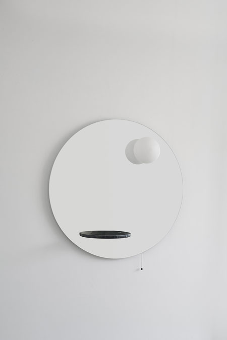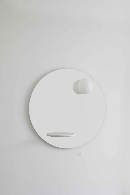 런던을 기반으로 둔 유명 산업 디자이너 사무엘 윌킨슨(Samuel Wilkinson)과 EX.T와의 콜라보에 의해 출시 된 거울 플로트(FLOAT)입니다. 우주 공간에 있는 두개의 행성과 중력, 부력에서 영감을 받아 만든 제품으로 두가지 컬러의 대리석, 비앙코 까라라와 네로 마퀴나 선반에서 조명인 하얀구가 부력으로 인하여 떠 있는 형상을 나타낸 제품입니다. 거울속에 비추어 지는 모습으로 타원인 선반이 원형이 되고 조명 또한 거울 안으로 들어간듯한 착각을 불러 일으키는 멋진 오브제가 되는 제품입니다.